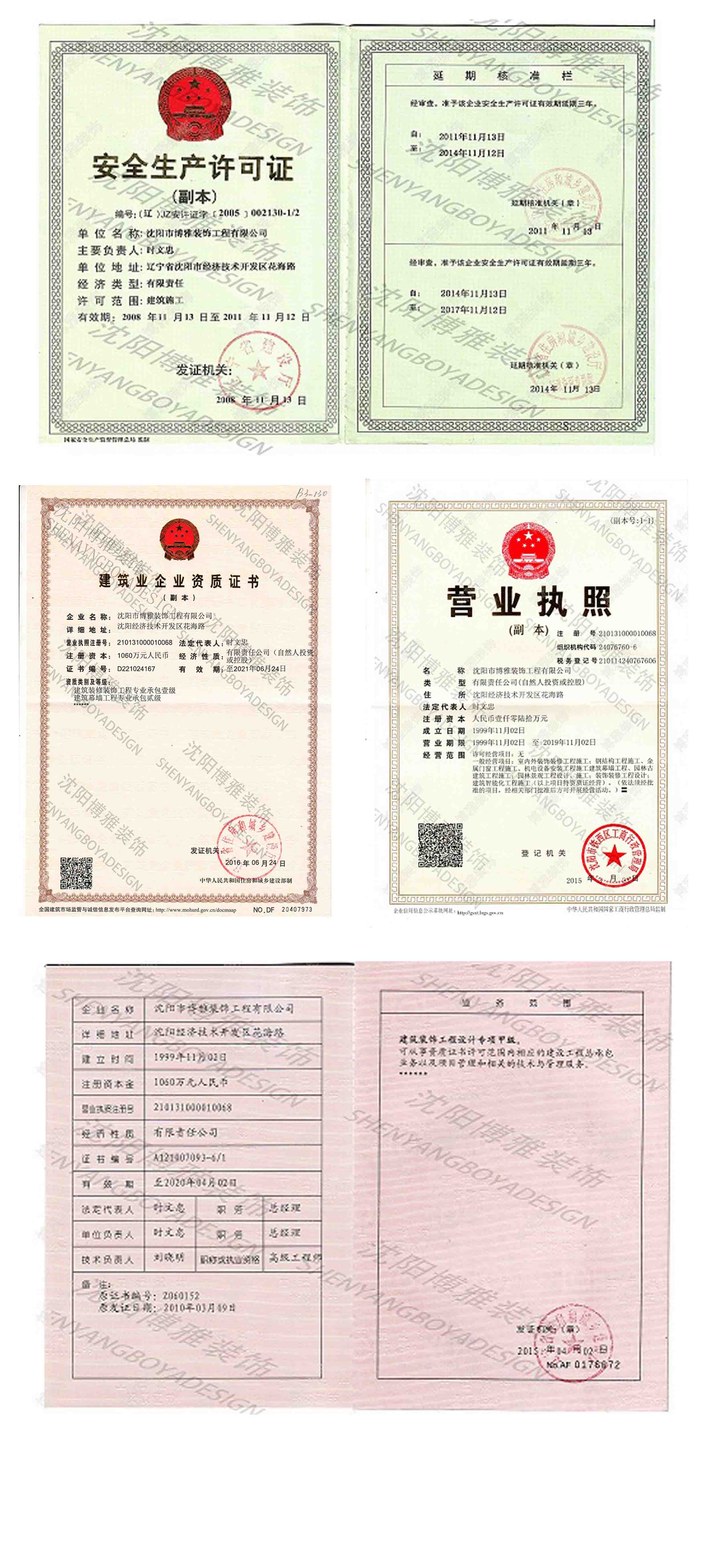 沈陽市博雅裝飾工程有限公司于1994年組建誕生。注冊資金1060萬元,裝飾設計甲級資質(zhì),建筑裝飾裝修業(yè)中同時具備國家建筑裝飾施工一級,建筑幕墻工程貳級,鋼結(jié)構工程叁級,“雙甲”資質(zhì)的企業(yè)。